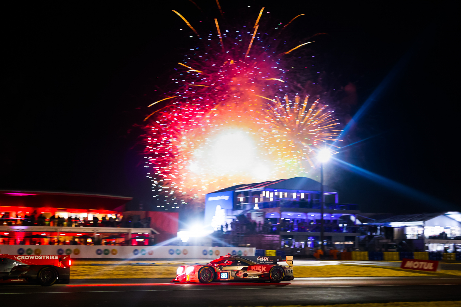 Après 12 heures de course, Toyota, Ferrari, Cadillac et Porsche s’affrontent pour la première place. L’avantage est à Toyota, mais, dans cette course folle, les choses peuvent vite tourner. Le constructeur japonais l’a appris à ses dépens au carillon de minuit lorsque la GR010 Hybrid #7 a été impliquée dans une collision en chaîne avec l’Oreca 07-Gibson #39 de Graff Racing, la Ferrari 488 GTE Evo #66 de JMW Motorsport et l’Oreca 07-Gibson #35 d’Alpine Elf Team. L’Hypercar japonaise a été percutée à l’arrière et contrainte à l’abandon.